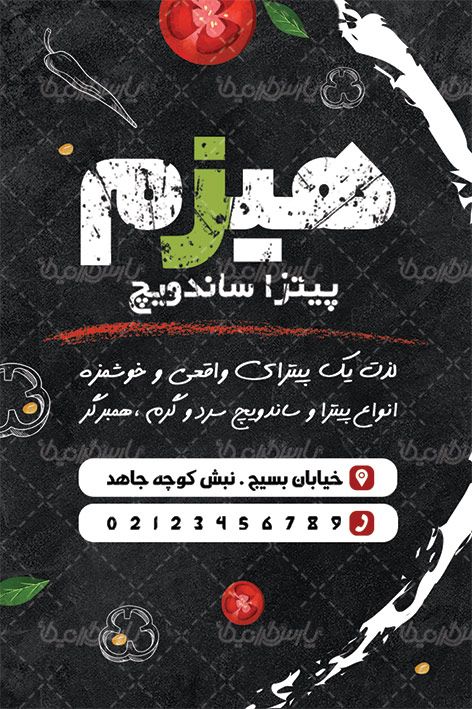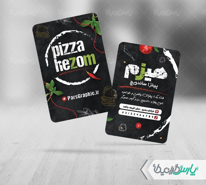 مشخصات فنی طرح کارت ویزیت پیتزا و فست فود