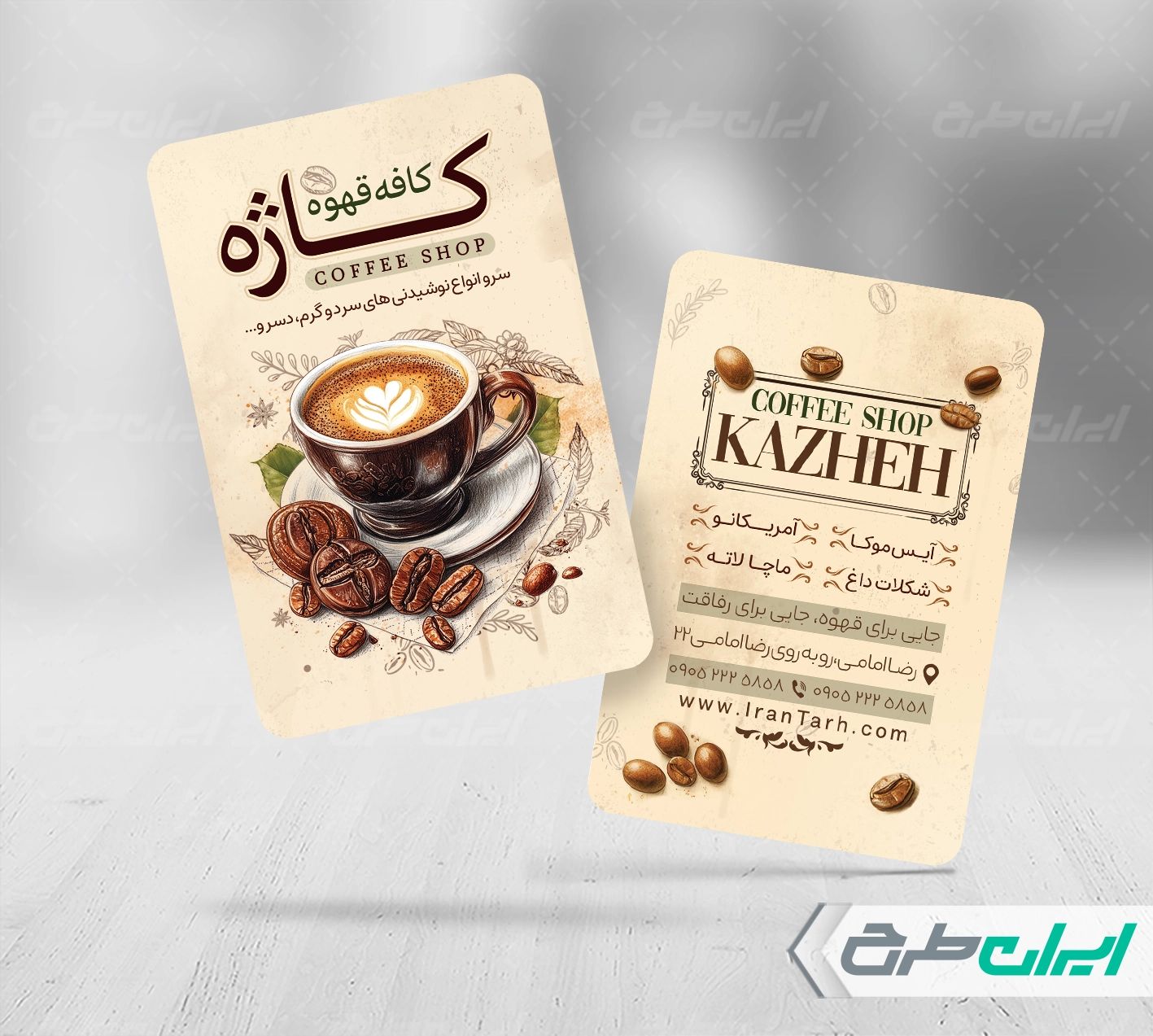 طرح کارت ویزیت کافه قهوه، جهت بازاریابی و تبلیغات این دسته از مغازه ها توسط تیم طراحان ایران طرح طراحی و در دسترس کاربران سایت قرار گرفته است.