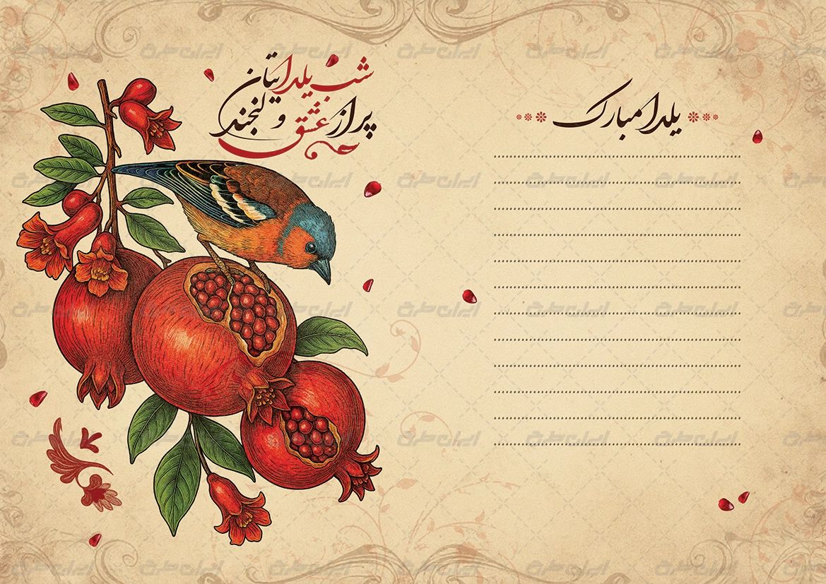 مشخصات فنی طرح لایه باز کارت پستال شب یلدا