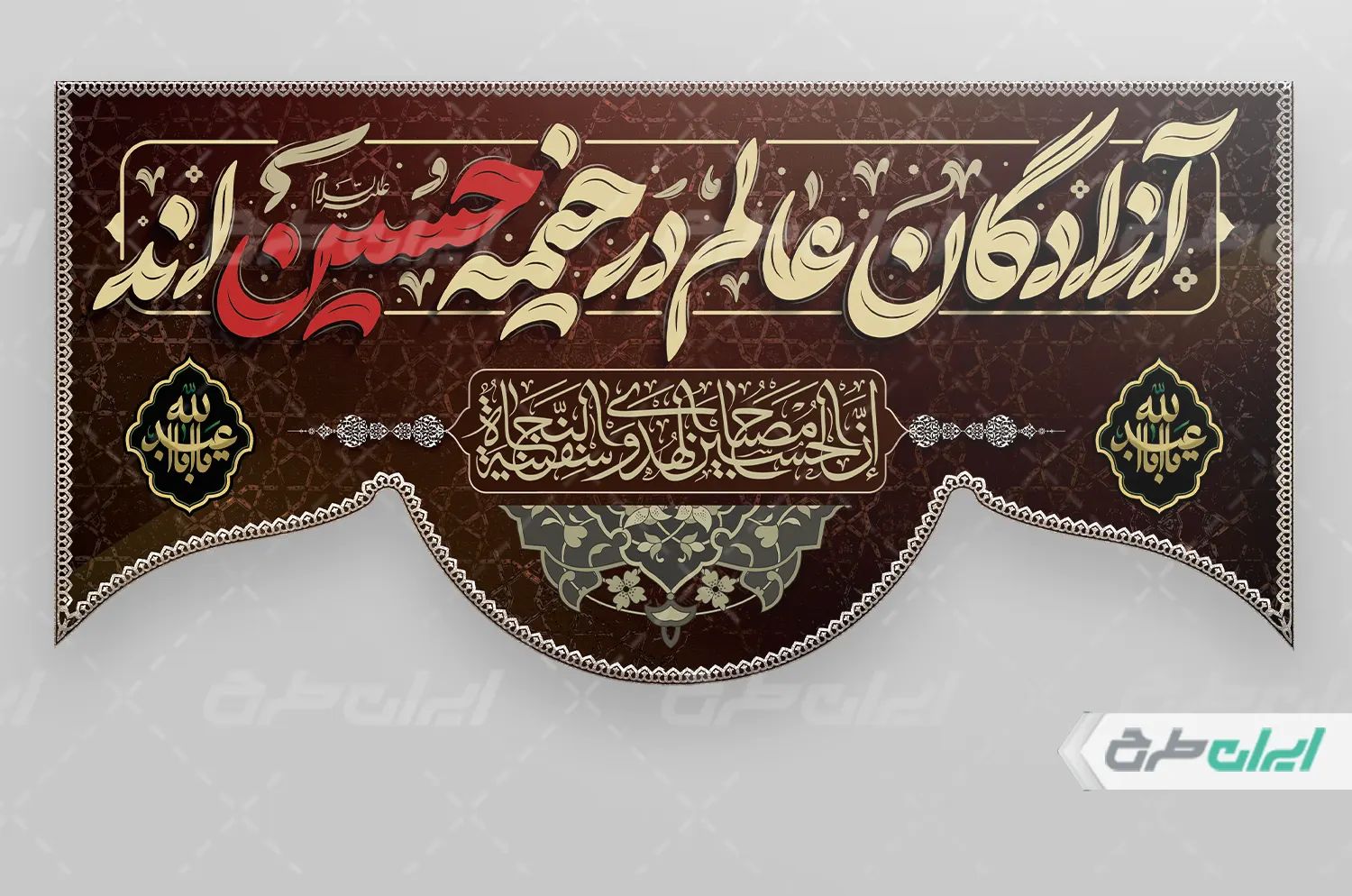 تایپوگرافی آزادگان عالم در خیمه حسین اند، کادر مذهبی، کادر تذهیب، نقوش مذهبی، کادر اسلیمی، کادر اسلامی می باشد که توسط طراحان ایران طرح در نرم افزار فتوشاپ طراحی شده است.