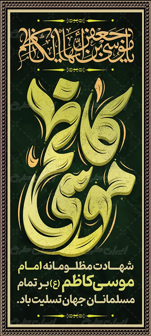 تایپوگرافی موسی الکاظم، تذهیب، نقوش مذهبی و متن تسلیت شهادت امام موسی کاظم می باشد.