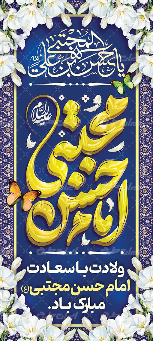 طرح بنر ولادت امام حسن مجتبی (ع) شامل: