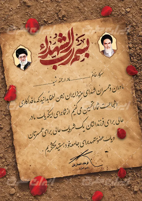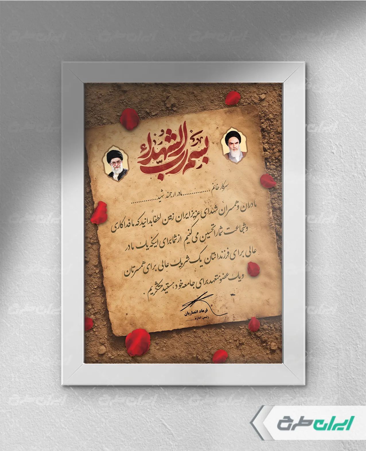 طرح لوح تقدیر خانواده شهدا، توسط تیم ایران طرح جهت استفاده کاربران طراحی و در دسترس کاربران سایت قرار گرفته است.