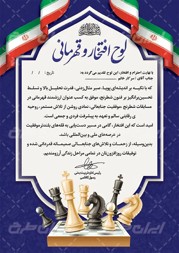 تقدیرنامه , حکم قهرمانی , طرح حکم قهرمانی , طرح psd لوح تقدیر , حکم قهرمانی لایه باز , دانلود طرح لایه باز حکم قهرمانی , حکم قهرمانی , لوح تقدیر ورزشی , لوح سپاس لوح تقدیر لایه باز , لوح سپاس مسابقات ورزشی , متن لوح سپاس , طرح حکم قهرمانی , لوح تقدیر ,