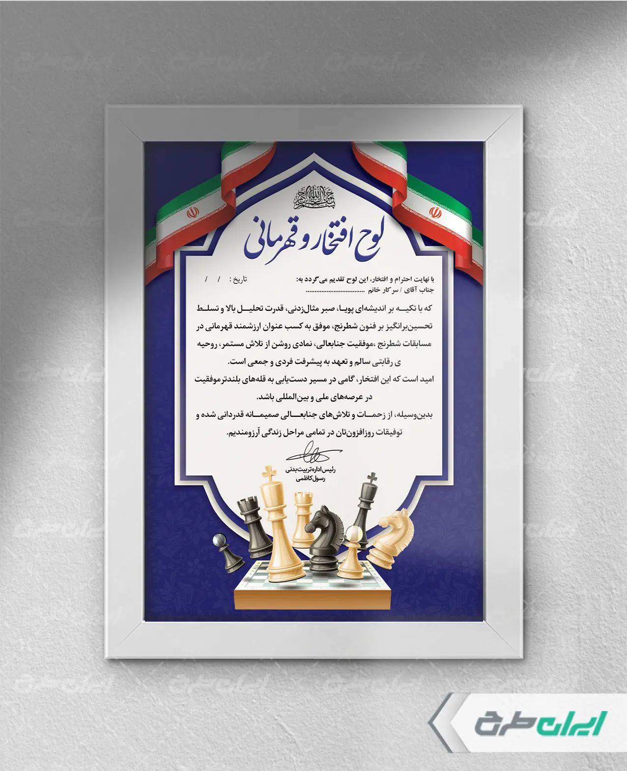طرح لوح تقدیر قهرمانی، توسط تیم ایران طرح جهت تقدیر و تشکر از ورزشکاران طراحی و در دسترس کاربران سایت قرار گرفته است.