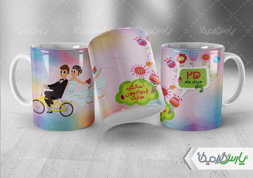 طرح ماگ سالگرد ازدواج با پسوند psd طراحی شده و در نرم افزار فتوشاپ قابل ویرایش می باشد .