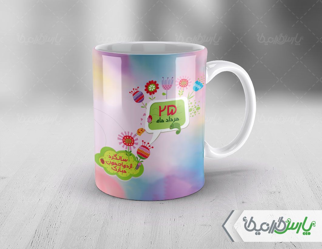 طرح لایه باز ماگ سالگرد ازدواج در ابعاد مناسب جهت چاپ بر روی لیوان طراحی شده است .