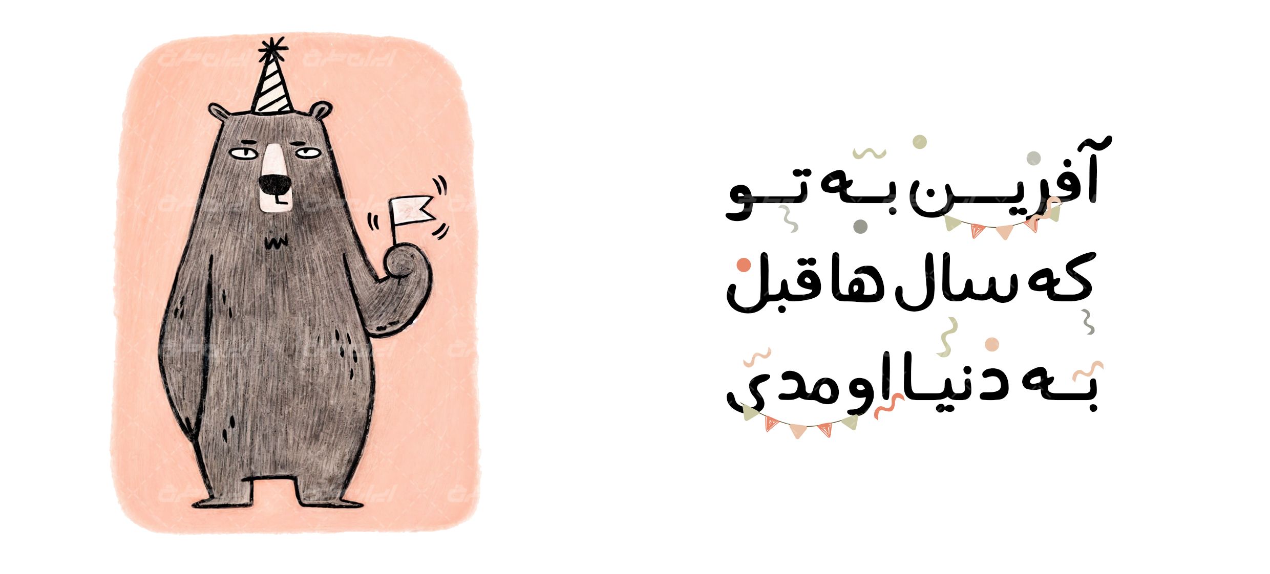تصویرسازی و متن تبریک تولد می باشد که توسط طراحان ایران طرح در نرم افزار فتوشاپ طراحی شده است.
