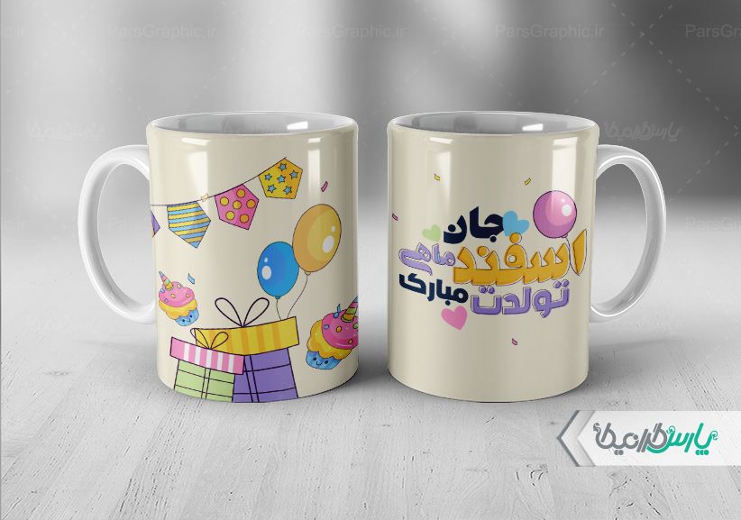 طرح ماگ متولدین اسفند ، طرح ماگ، ماگ متولدین اسفند ، طرح گرافیکی و فانتزی ماگ، متن اسفند ماهی جان تولدت مبارک، ماگ اسفند ، طرح ماگ اسفند