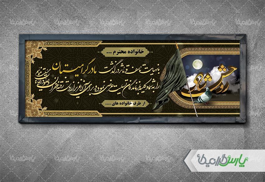 طرح بنر تسلیت بصورت لایه باز و با پسوند psd طراحی شده است .
