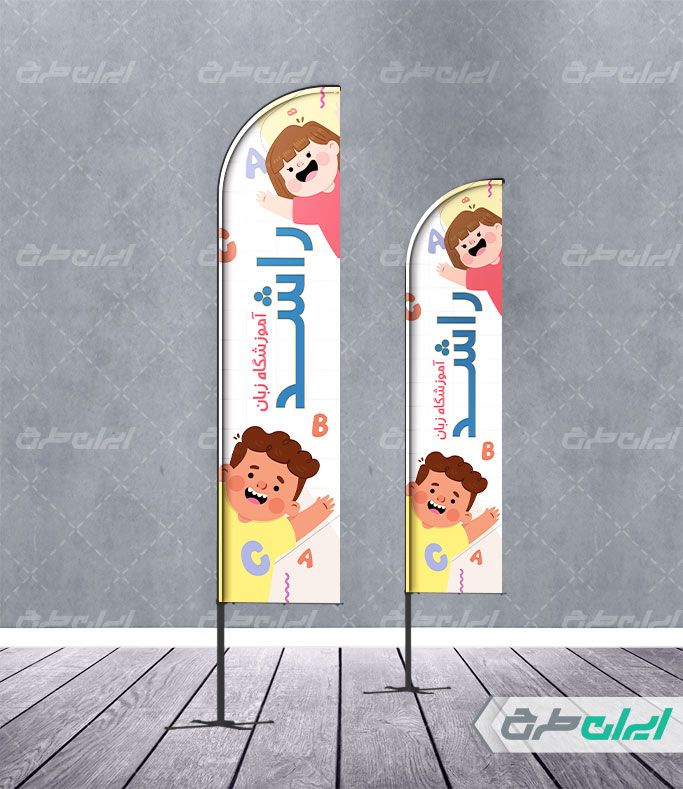 آموزشگاه زبان , طرح پرچم ساحلی آموزشگاه زبان , طرح لایه باز پرچم ساحلی , پرچم ساحلی آموزشگاه زبان ,