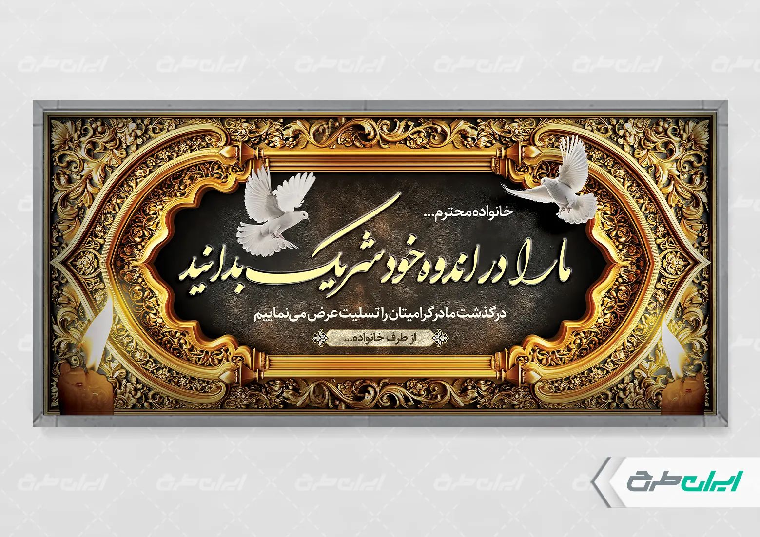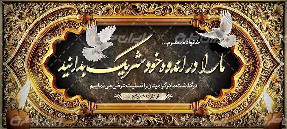 طرح بنر تسلیت ، توسط تیم حرفه ای ایران طرح جهت استفاده کاربران سایت طراحی و به صورت لایه باز در دسترس کاربران قرار گرفته است.
