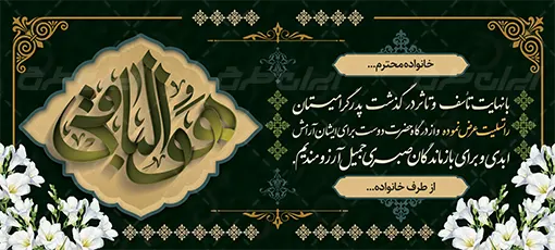طرح بنر تسلیت ، توسط تیم حرفه ای ایران طرح جهت استفاده کاربران سایت طراحی و به صورت لایه باز در دسترس کاربران قرار گرفته است.