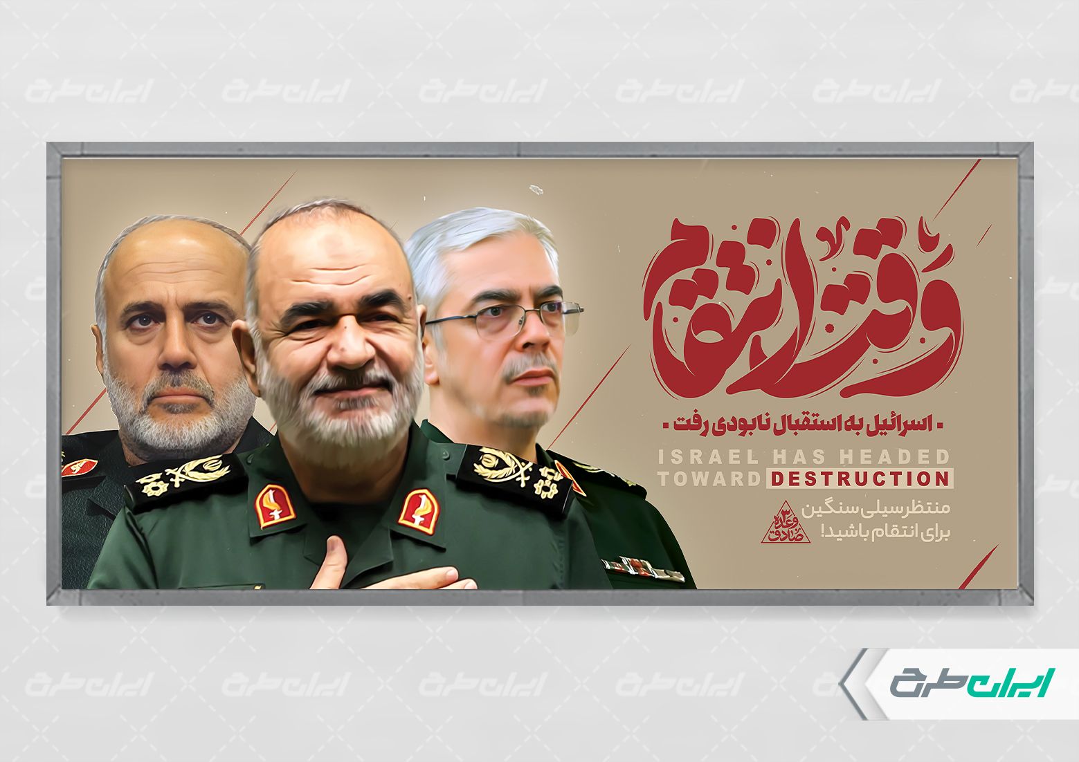 تصویر شهید سلامی و متن مرتبط با این حمله موشکی است که توسط تیم خلاق ایران طرح طراحی شده است.