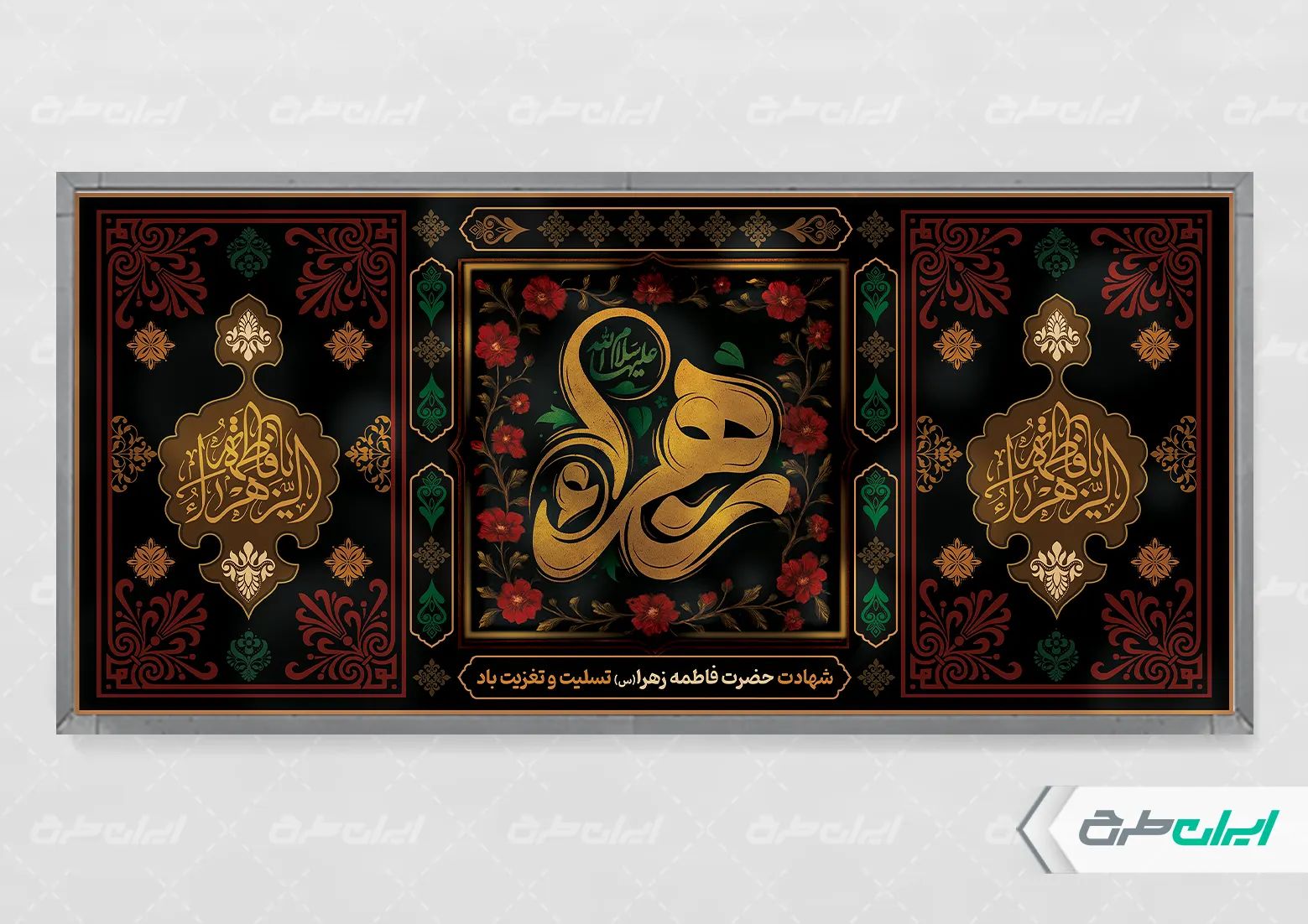 طرح بنر سالگرد شهادت حضرت فاطمه زهرا شامل: