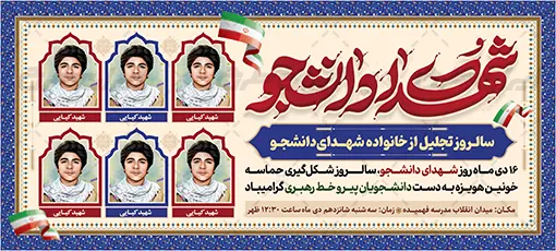 تایپوگرافی شهدای دانشجو و متن گرامیداشت این روز می باشد که توسط تیم ایران طرح طراحی شده است.