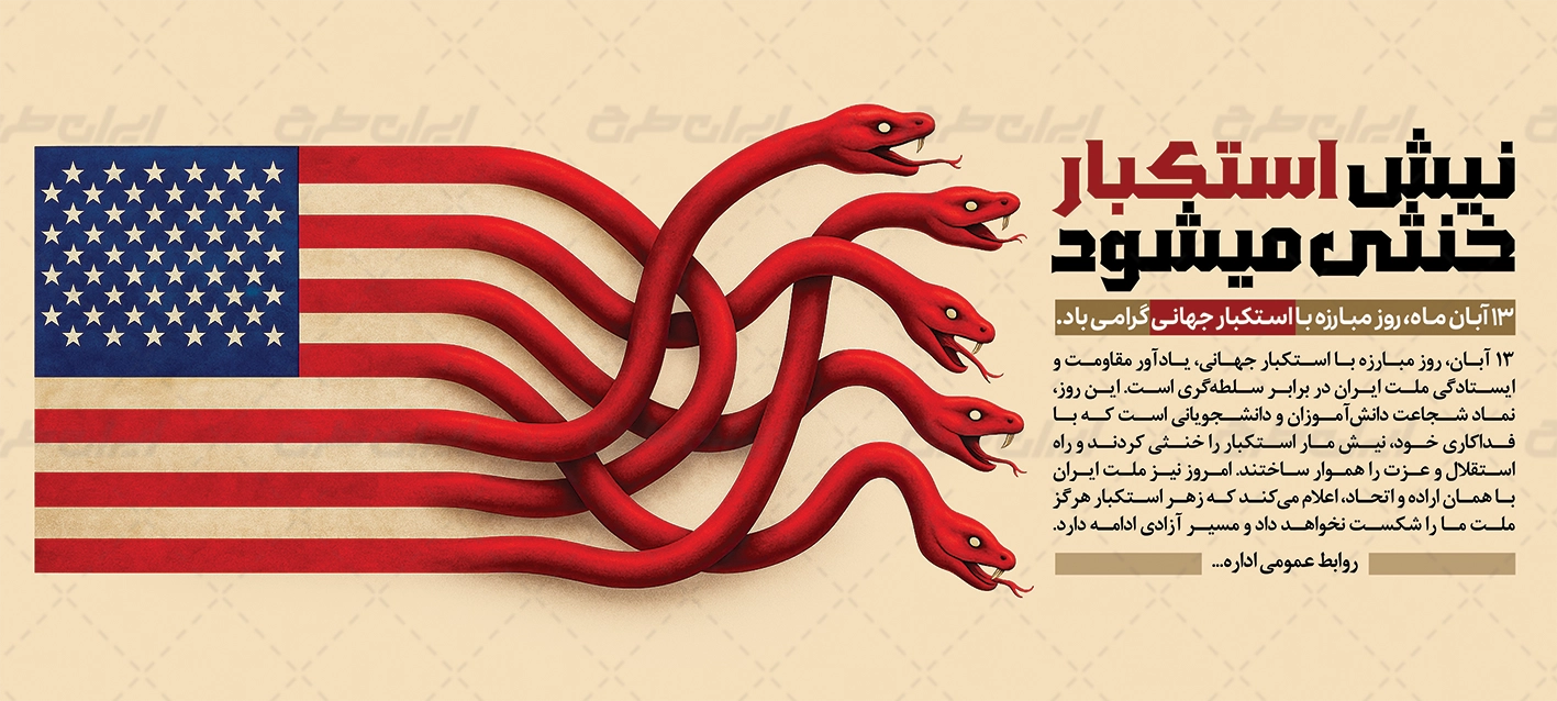 ضمنا به دلیل لایه باز بود طرح بنر 13 آبان و روز مبارزه با استکبار جهانی می توانید با استفاده از نرم افزار فتوشاپ طرح را ویرایش نمایید.
