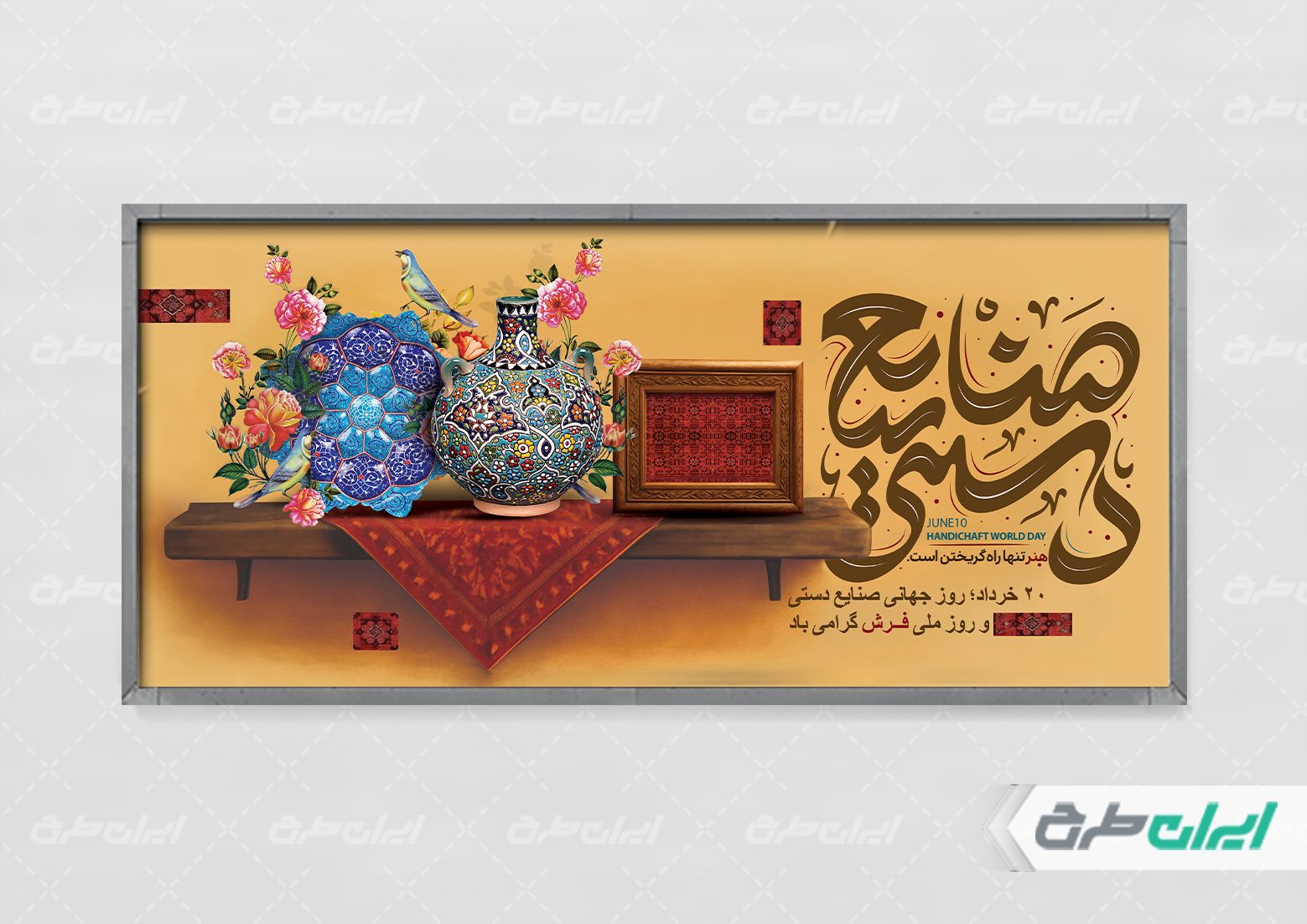 بنر لایه باز روز ملی فرش، توسط تیم با تجربه ایران طرح جهت استفاده کاربران سایت طراحی و به صورت لایه باز در دسترس کاربران قرار گرفته است.