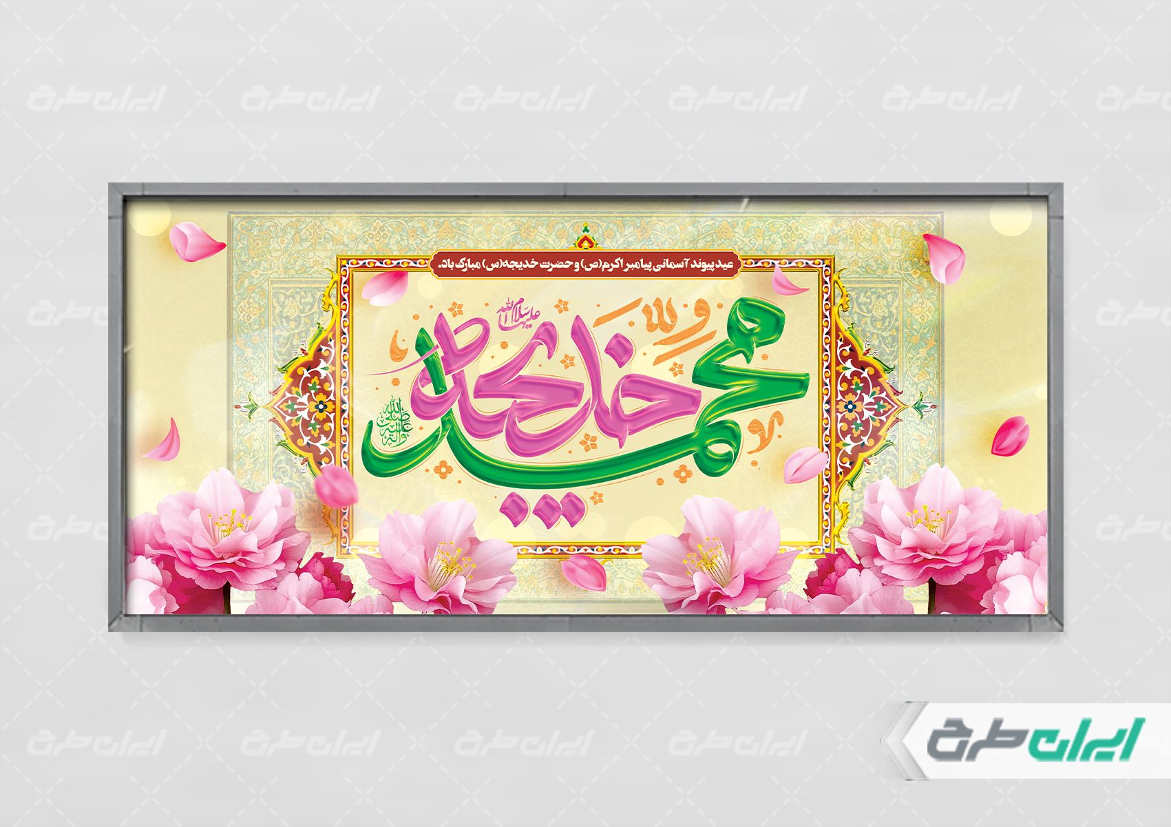 طرح بنر سالروز ازدواج حضرت محمد و حضرت خدیجه (س) شامل: