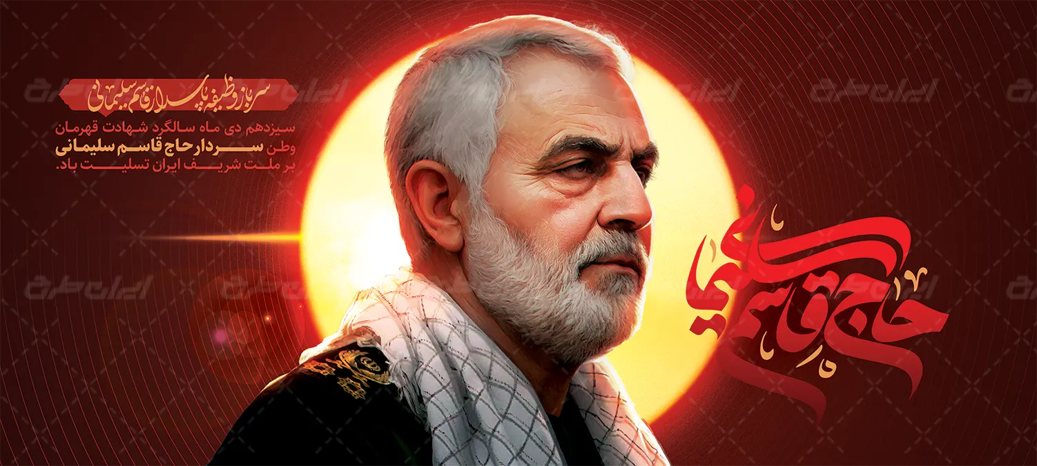 بنر شهادت سردار قاسم سلیمانی ، توسط تیم حرفه ای ایران طرح جهت استفاده کاربران سایت طراحی و به صورت لایه باز در دسترس کاربران قرار گرفته است.