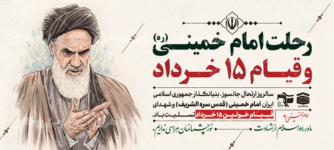 - طراحی بنر با استفاده از تصویر امام خمینی (ره) در طرح بنرقیام 15 خرداد