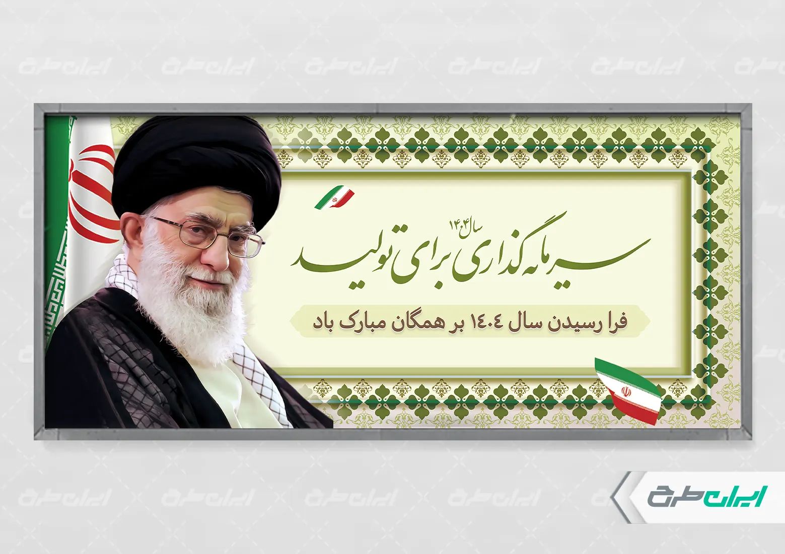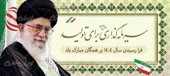 تصویر رهبری و متن شعار سال سرمایه گذاری برای تولید، که توسط تیم ایران طرح طراحی شده است.