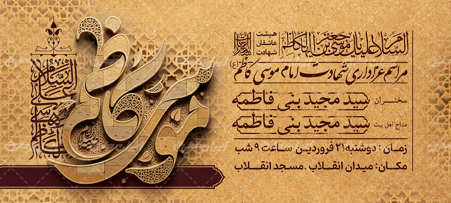 ضمنا به دلیل لایه باز بود طرح بنر شهادت امام کاظم را می توانید با استفاده از نرم افزار فتوشاپ تغییرات دلخواه خود را اعمال کنید.