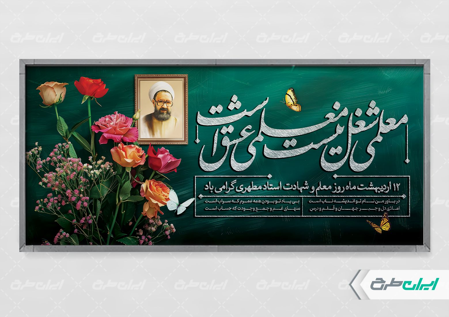 تصویر شهید مطهری و متن گرامیداشت روز معلم می باشد که توسط تیم ایران طرح طراحی شده است.