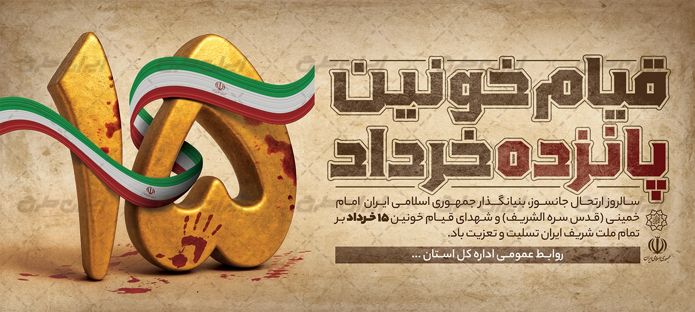 بنر قیام 15 خرداد، توسط تیم حرفه ای ایران طرح جهت استفاده کاربران سایت طراحی و به صورت لایه باز در دسترس کاربران قرار گرفته است.