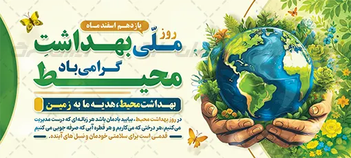 بنر لایه باز روز ملی بهداشت محیط، توسط تیم حرفه ای ایران طرح جهت استفاده کاربران سایت طراحی و به صورت لایه باز در دسترس کاربران قرار گرفته است.