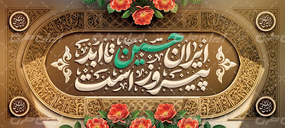 تذهیب و متن تسلیت ماه محرم می باشد که توسط طراحان ایران طرح در نرم افزار فتوشاپ طراحی شده است.