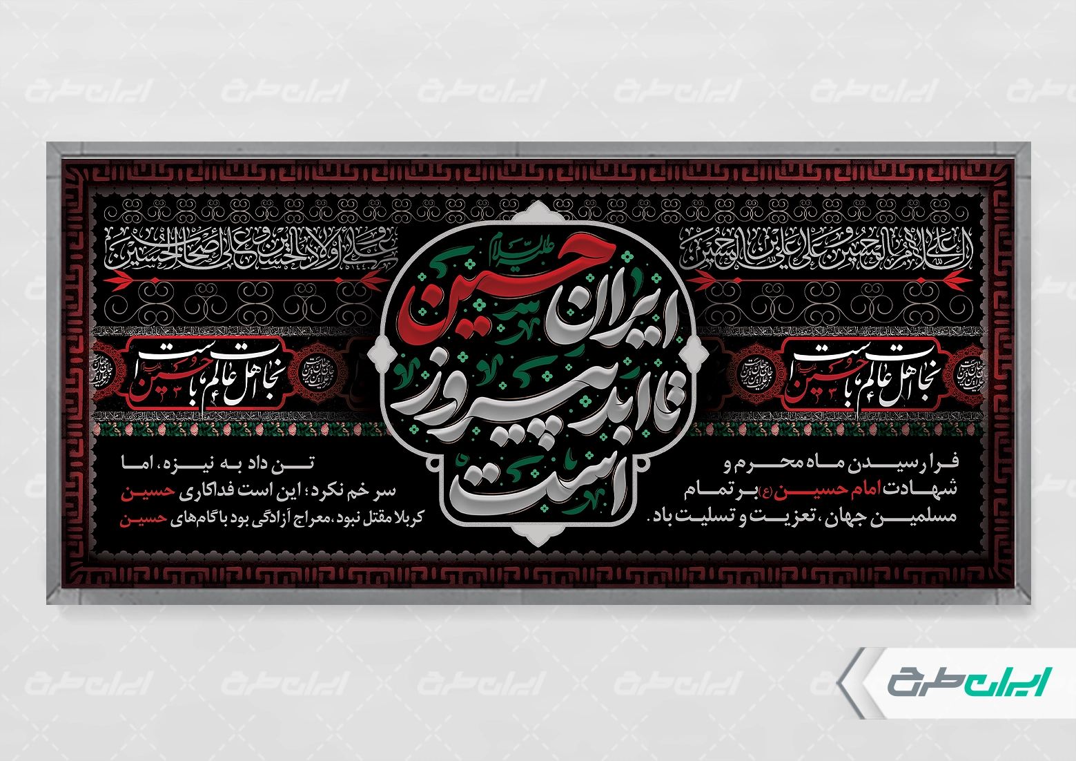 پلاکارد محرم با شعار ایران حسین تا ابد پیروز است