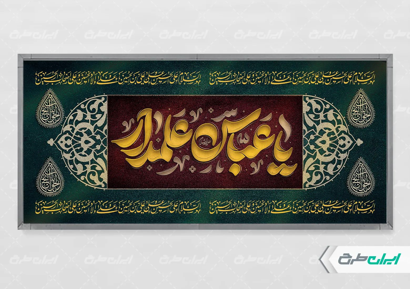 تایپوگرافی یا عباس علمدار و تذهیب و متن تسلیت ایام محرم می باشد که توسط طراحان ایران طرح در نرم افزار فتوشاپ طراحی شده است.