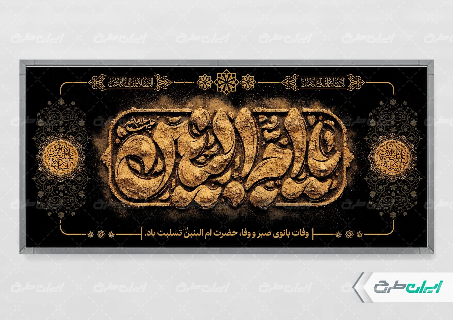 بنر وفات حضرت ام البنین، توسط تیم حرفه ای ایران طرح جهت استفاده کاربران سایت طراحی و به صورت لایه باز در دسترس کاربران قرار گرفته است.