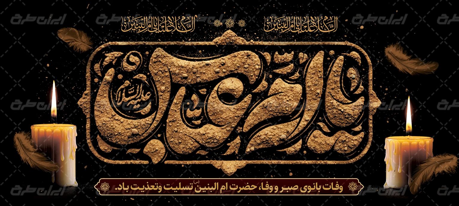 بنر وفات حضرت ام البنین، توسط تیم حرفه ای ایران طرح جهت استفاده کاربران سایت طراحی و به صورت لایه باز در دسترس کاربران قرار گرفته است.