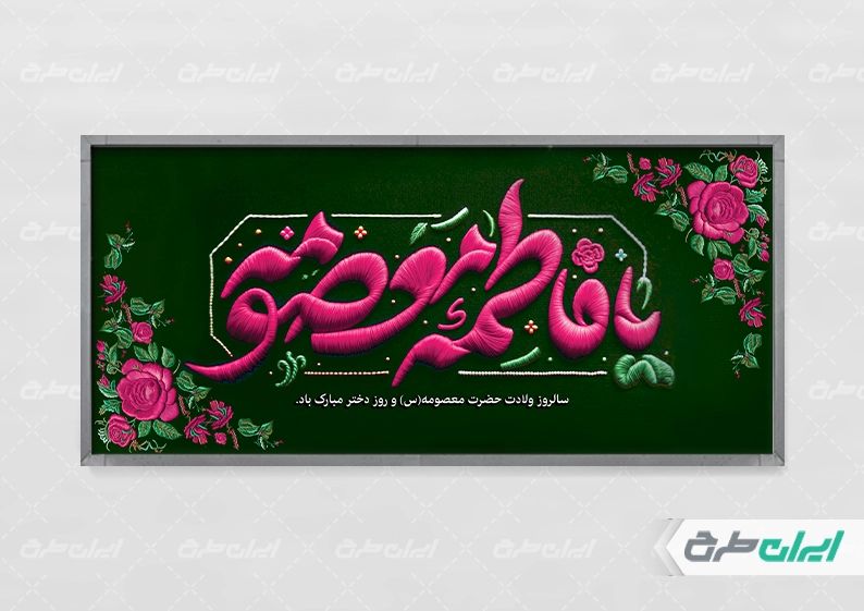 تایپوگرافی یا فاطمه معصومه، تذهیب، طرح گل و متن گرامیداشت ولادت حضرت معصومه (س) و روز دختر می باشد که توسط تیم ایران طرح طراحی شده است.