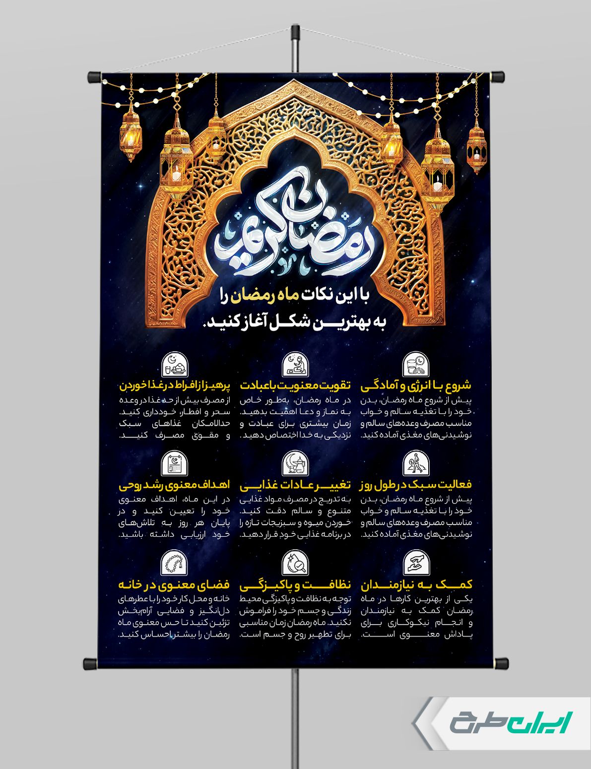ماه رمضان بهعنوان ماه عبادت، روزهداری و نزدیکی به خداوند، اهمیت ویژهای در فرهنگ اسلامی دارد. در این ماه، مسلمانان به یاد خداوند و انجام عبادات و اعمال خیر میپردازند. از این رو، چاپ بنر برای این ماه میتواند تأثیرات معنوی و تبلیغاتی زیادی داشته باشد. بنرهایی با طراحیهای مناسب، که در آنها آیات قرآن، پیامهای معنوی و تصاویری از نمادهای رمضان بهکار رفته باشد، میتوانند علاوه بر جذب توجه افراد، فضاهای عمومی مانند مساجد، خیابانها و فروشگاهها را با یک حس معنوی پر کنند. این نوع بنرها بهویژه برای تبلیغ برنامههای ویژه این ماه، نظیر افطاریها، مراسمات مذهبی و پکیجهای خدماتی ویژه رمضان بسیار مفید خواهند بود.