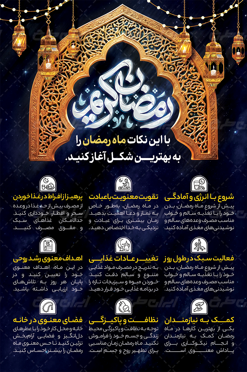 ضمنا به دلیل لایه باز بود طرح بنر ماه رمضان می توانید با استفاده از نرم افزار فتوشاپ تغییرات دلخواه خود را اعمال کنید.