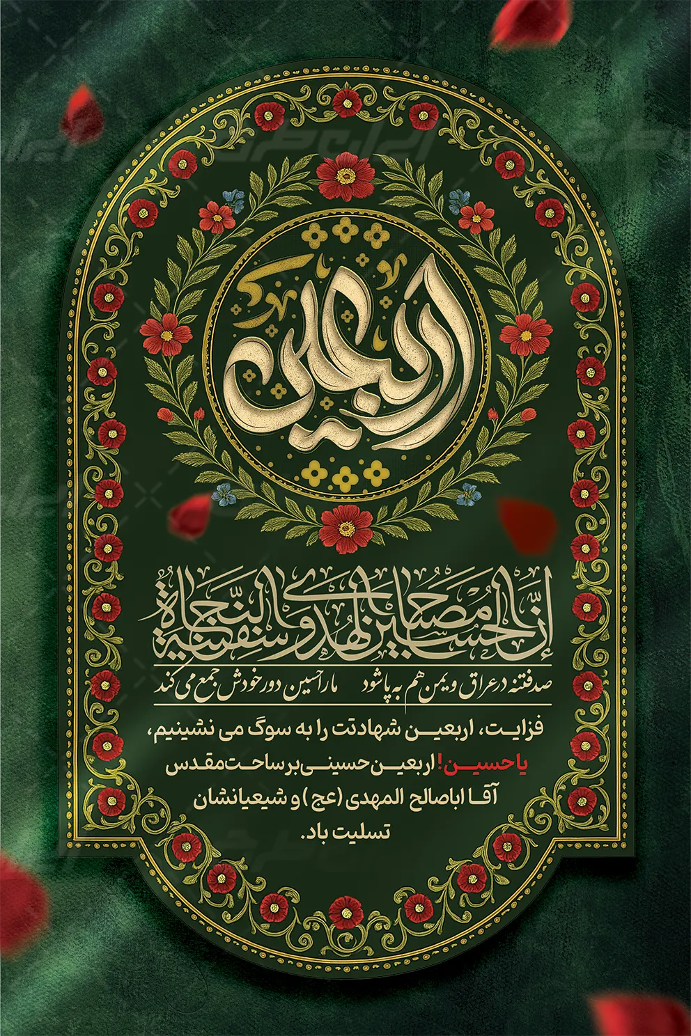 تایپوگرافی اربعین و متن تسلیت اربعین حسینی می باشد که توسط طراحان ایران طرح در نرم افزار فتوشاپ طراحی شده است.