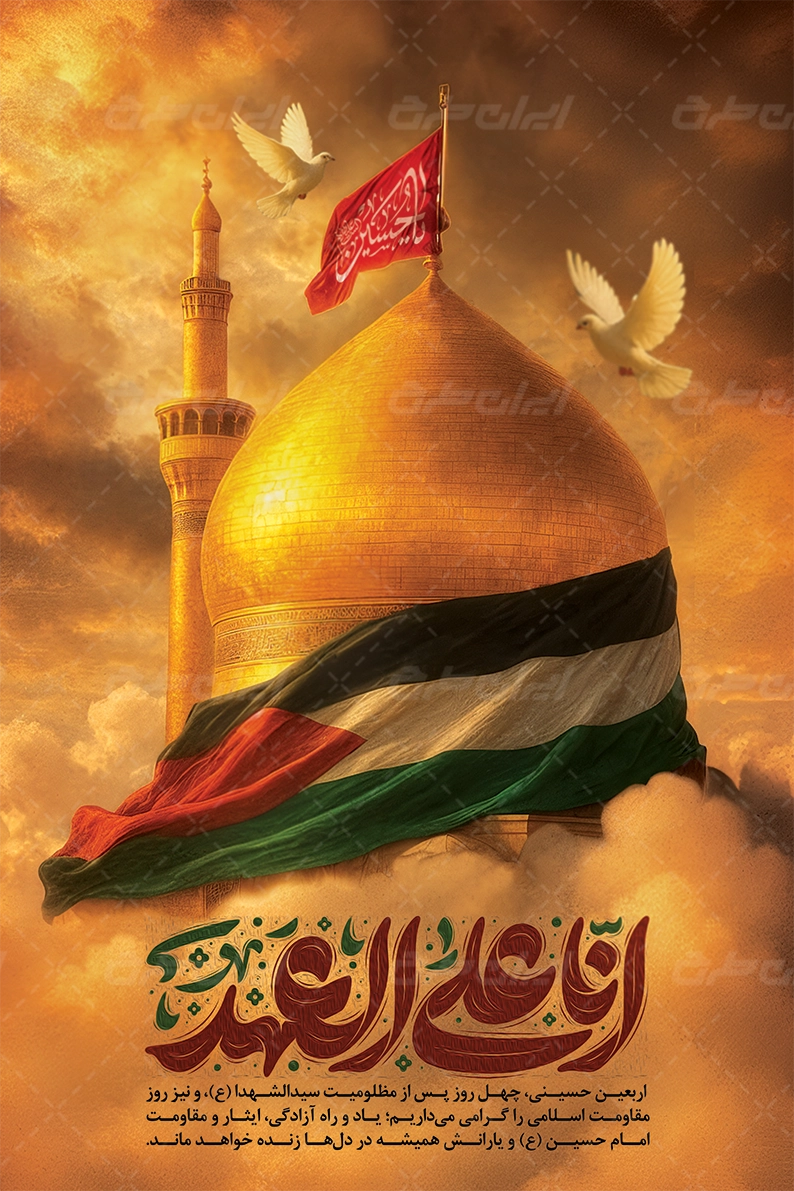 تصویر حرم و متن تسلیت اربعین حسینی می باشد که توسط طراحان ایران طرح در نرم افزار فتوشاپ طراحی شده است.