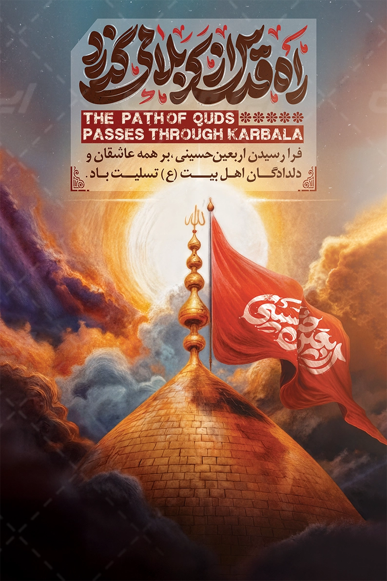 تایپوگرافی راه قدس از کربلا میگذرد و متن تسلیت اربعین حسینی می باشد که توسط طراحان ایران طرح در نرم افزار فتوشاپ طراحی شده است.