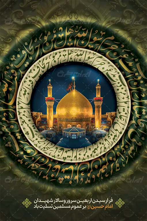 تصویر حرم و متن تسلیت اربعین حسینی می باشد که توسط طراحان ایران طرح در نرم افزار فتوشاپ طراحی شده است.