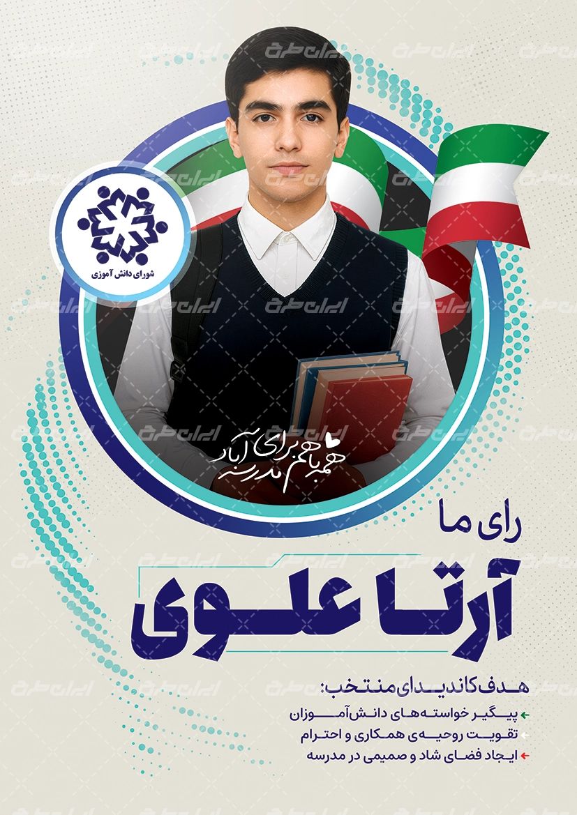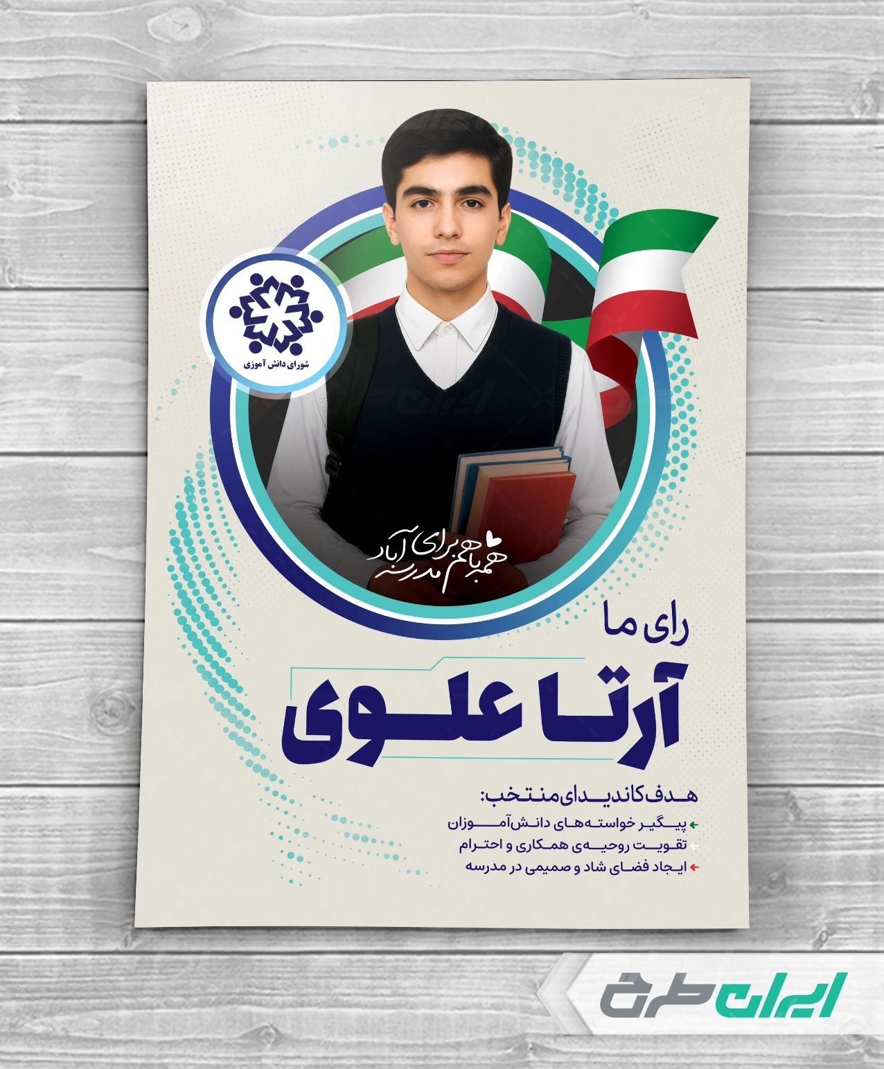 - استفاده از آیکون تصویر کاندیدای شورای دانش آموزی در طراحی پوستر