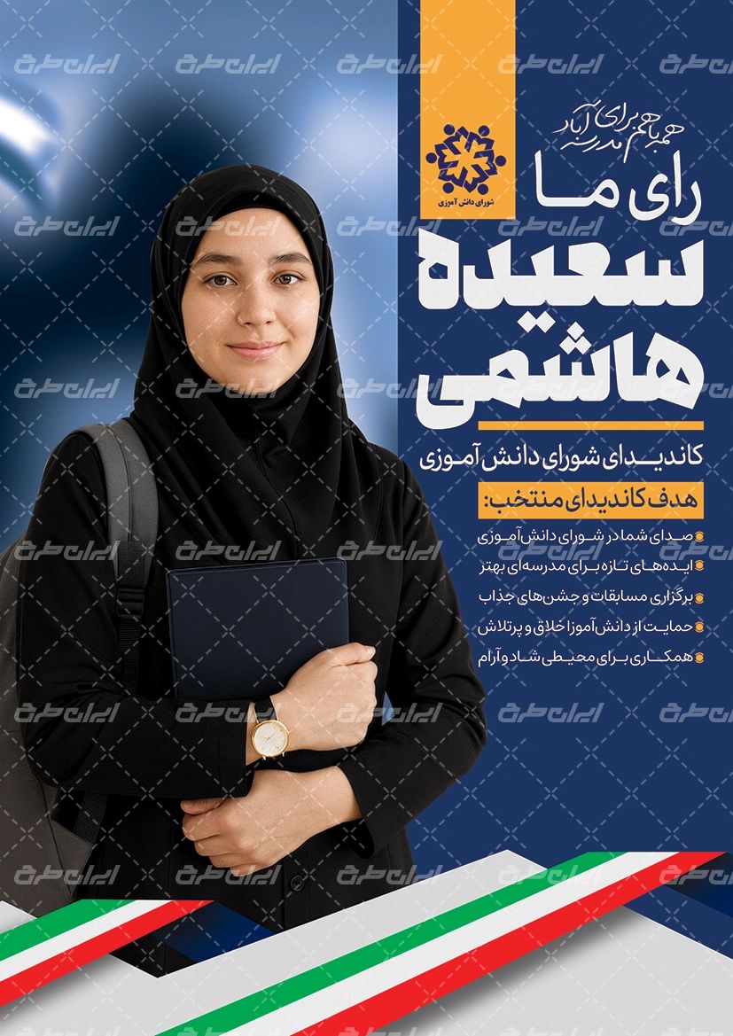 طرح پوستر انتخابات کاندیدای شورای دانش آموزی