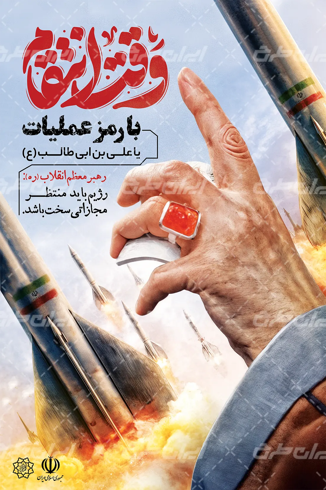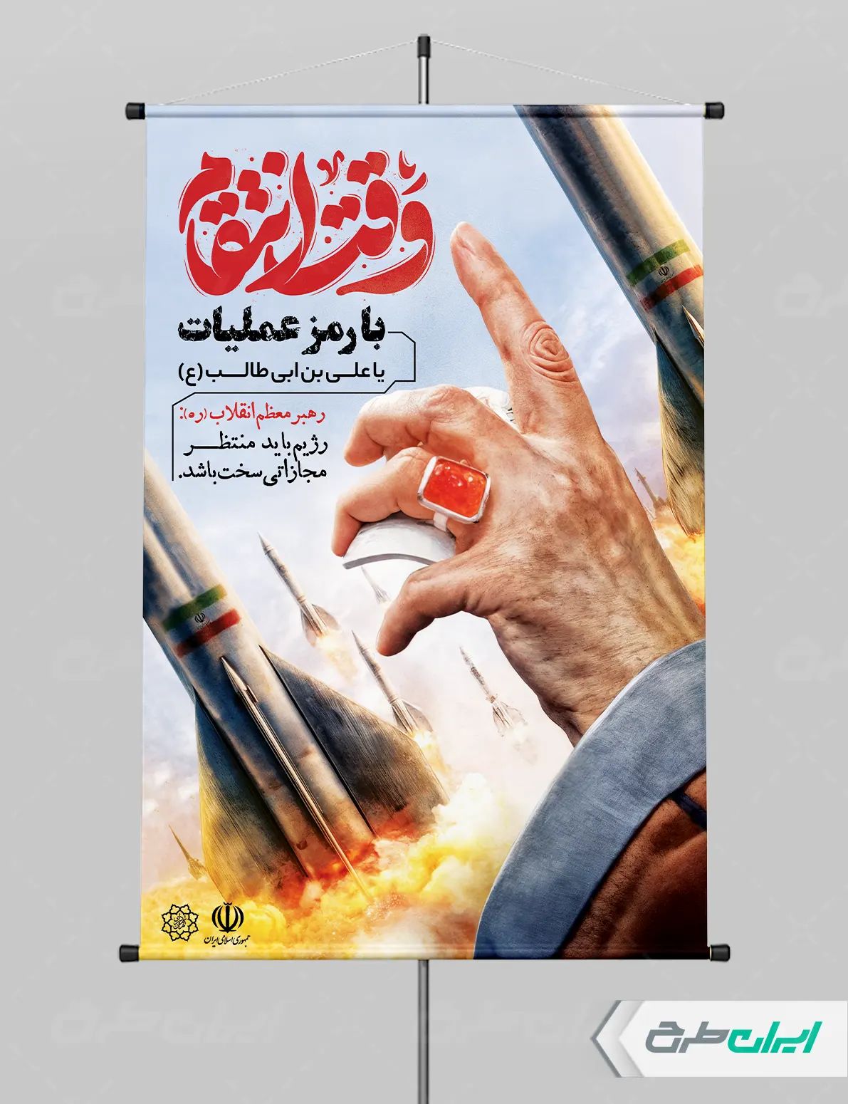 تصویر موشک و متن مرتبط با این حمله موشکی است که توسط تیم خلاق ایران طرح طراحی شده است.