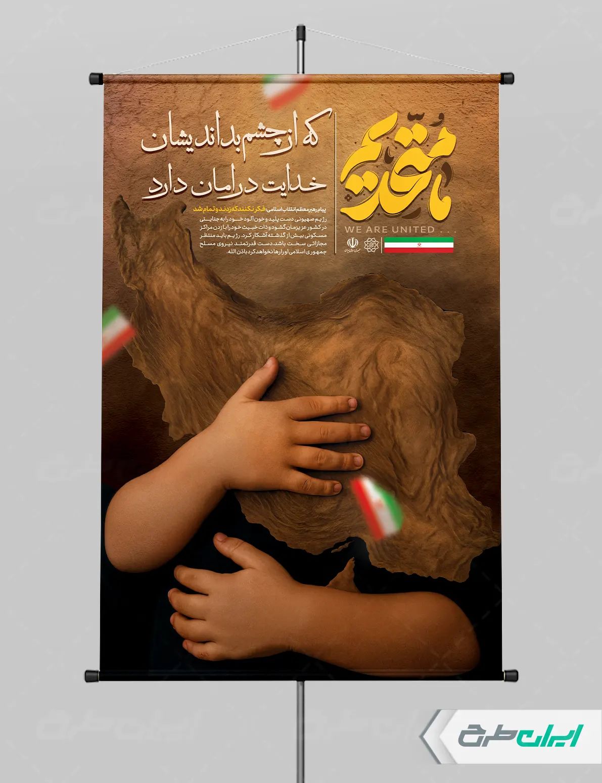 پوستر انتقام سخت با تصویر نقشه ایران و تایپوگرافی ما متحدیم