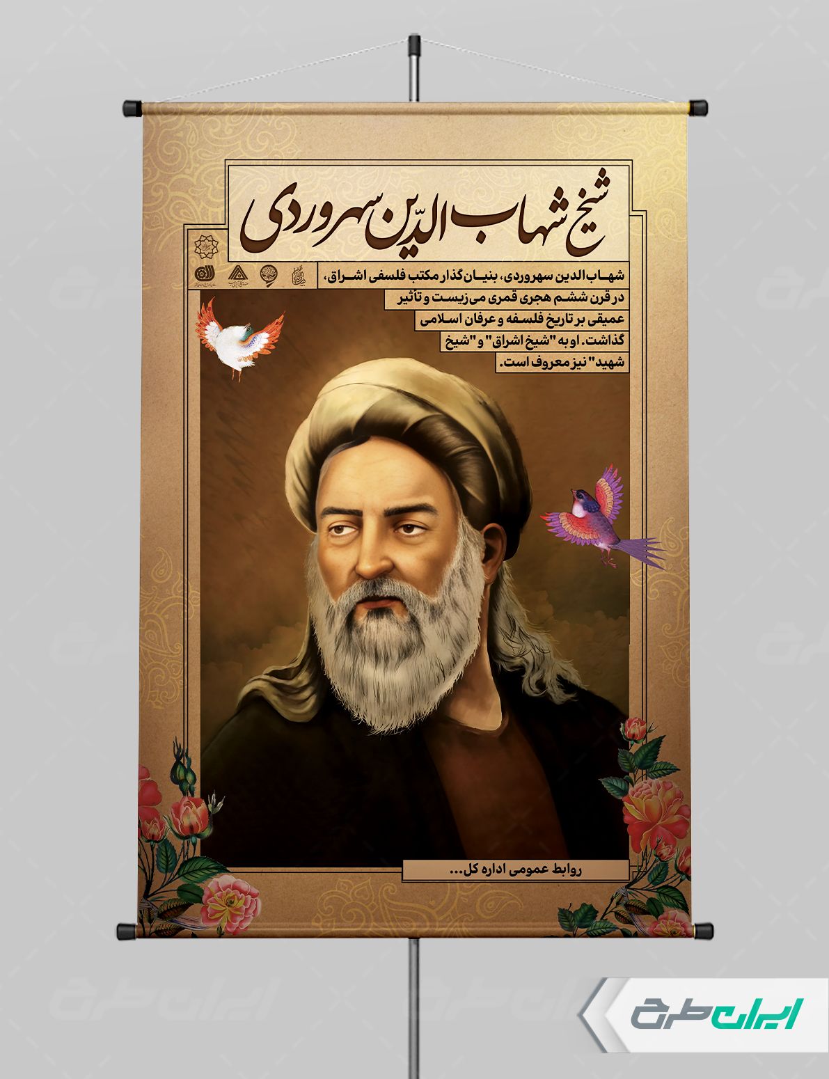 طرح بنر بزرگداشت شیخ شهاب الدین سهروردی شامل: