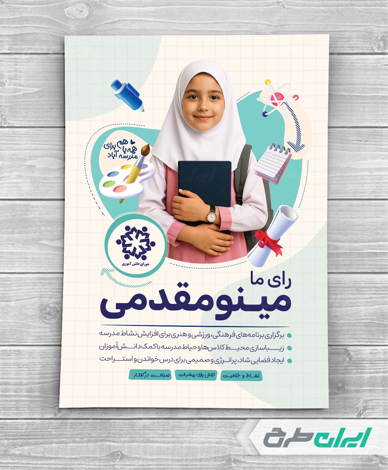 طرح پوستر انتخاباتی شورای مدرسه شامل: