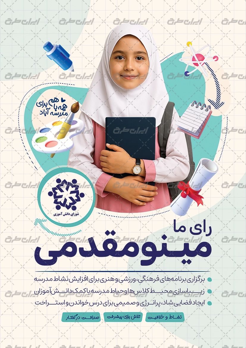 - استفاده از آیکون تصویر کاندیدای شورای دانش آموزی در طراحی پوستر