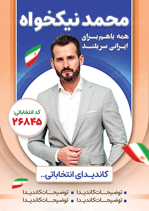 در تبلیغات انتخاباتی شورای شهر، پیامهای کاندیدا باید به شکلی جذاب و تأثیرگذار به رایدهندگان منتقل شود. پوسترهای تبلیغاتی با طراحی مناسب میتوانند در جلب توجه عمومی و ایجاد آگاهی درباره کاندیدا نقش مهمی ایفا کنند. استفاده از طرحهای لایه باز این امکان را به طراحان میدهد که با بهرهگیری از انعطافپذیری این طرحها، آنها را به راحتی برای هر کاندیدا و یا هر موقعیت خاص شخصیسازی کنند. این قابلیت به ویژه در کمپینهای انتخاباتی که ممکن است تغییرات سریعی در محتوا و طراحی نیاز باشد، بسیار مفید است.